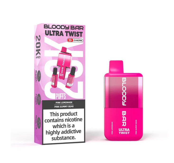 The Bloody Bar Ultra Twist is a high-performance disposable vape designed for extended use, delivering up to 20,000 puffs. Featuring a dual-flavor system, this device offers a twistable feature that allows users to switch between two flavours for a unique and customizable vaping experience.