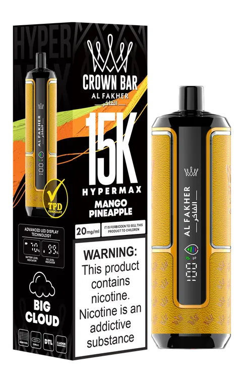 The Crown Bar Alfakhar 15K is a premium disposable vape designed for extended use, delivering a smooth and flavorful experience. With an impressive 15,000-puff capacity, a rechargeable battery, and high-quality e-liquid formulations, this device is a top choice for retailers looking to provide long-lasting vaping solutions.